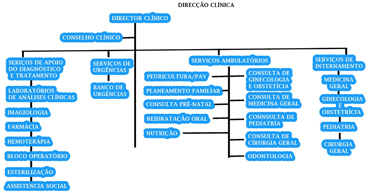 Prestar Cuidados de Saúde gerais diferenciados em medicina geral, ginecologia, odontologia, neonatologia, fisioterapia, imagiologia, otorrinolaringologia, e aos doentes tanto inseridos localmente como transferidos das unidades sanitárias menores da sua periferia;